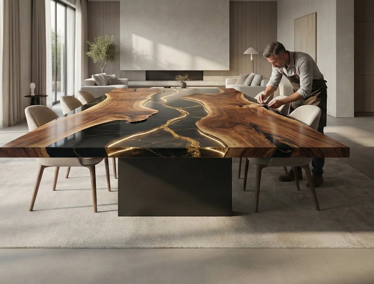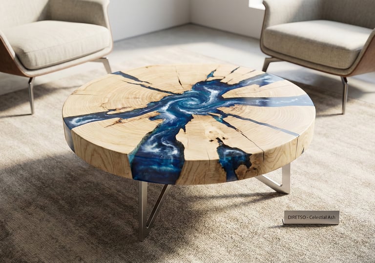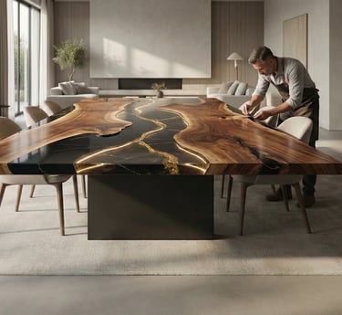 At diretso, each bespoke table and furniture piece is a quiet statement of refined craftsmanship, blending exotic wood, stone, and clear epoxy into lasting art.