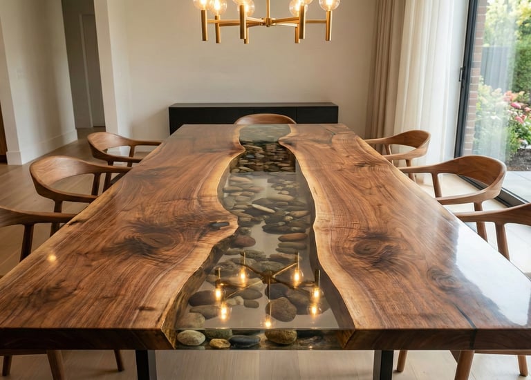 Bespoke epoxy dining tables designed for hotels, restaurants, cafés...